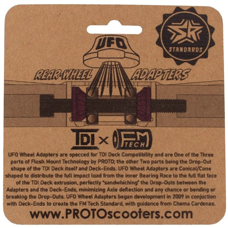 The Proto UFO 2-pack of rear wheel adapters ensures compatibility with all wheels on your PROTO TDI board.