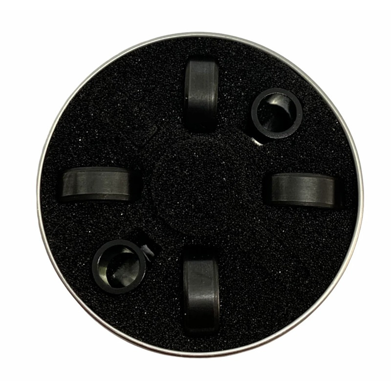 Les roulements sont fournis par lot de 4 dans une boîte métallique avec 2 entretoises en aluminium.