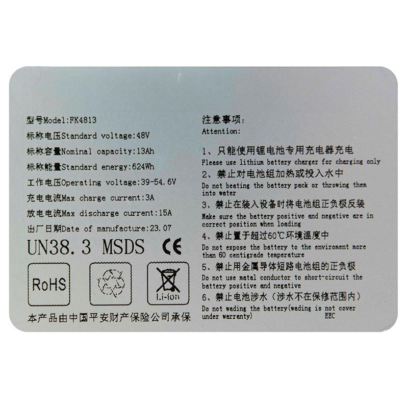 - Composition cellules: 10S6P-Modèle de cellule: Li-ON icr18650 3100mA/h [EVE]