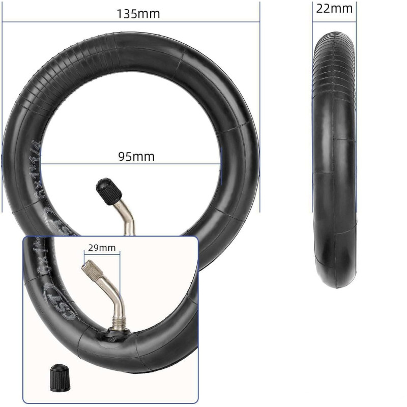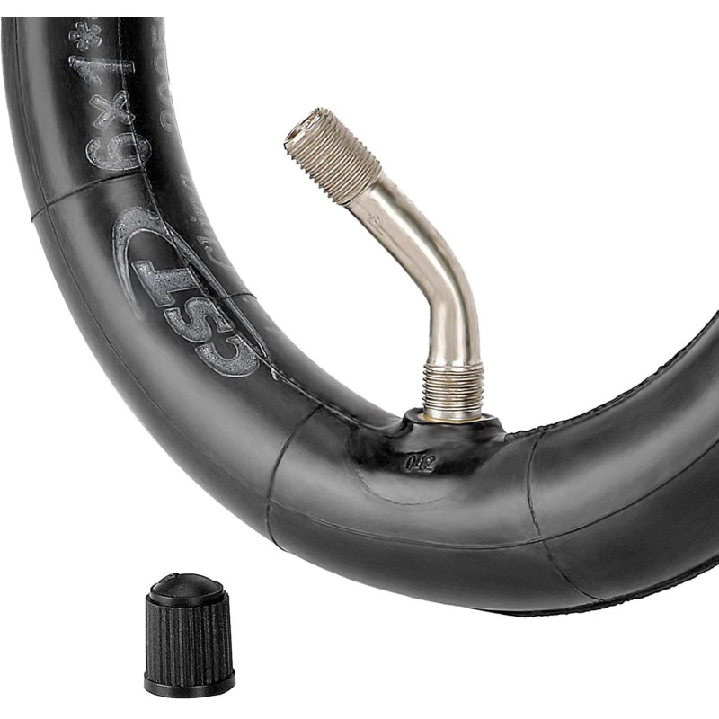 La chambre à air de 6 x 1,25 est fabriquée en caoutchouc de qualité supérieure qui maintient mieux l'air dans le tuyau et empêche les fuites d'air. En outre, la valve se plie à 60 degrés vers l'extérieur pour faciliter le gonflage