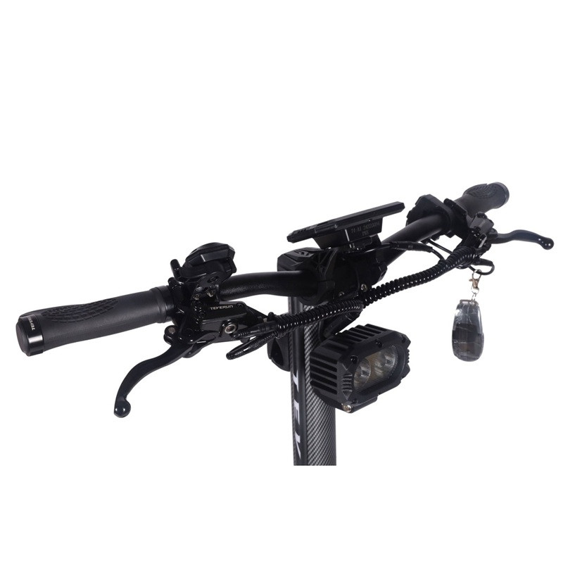 De plus, pour plus de sécurité, nous avons équipé cette Teverun de deux amortisseurs de direction. Ils permettent d’éviter le guidonnage à haute vitesse et renforce ainsi la sécurité lorsqu’on roule avec cette trottinette.